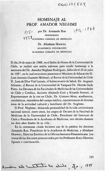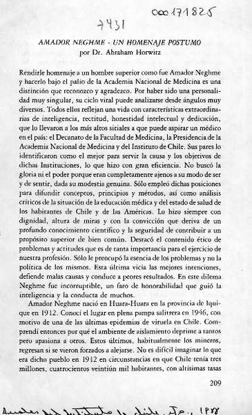 Amador Neghme, un homenaje póstumo [artículo] Abraham Horwitz.