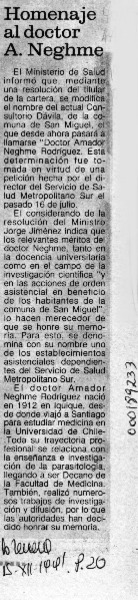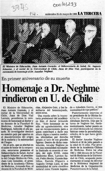 Homenaje a Dr. Neghme rindieron en U. de Chile [artículo].