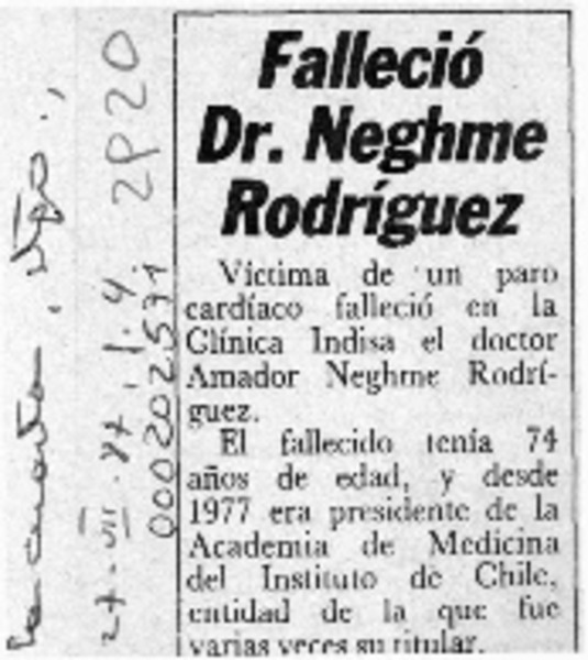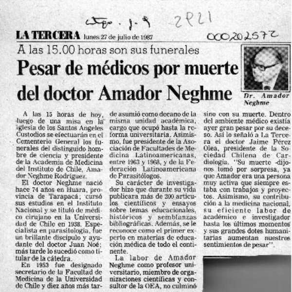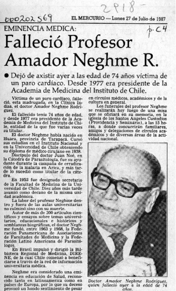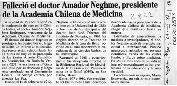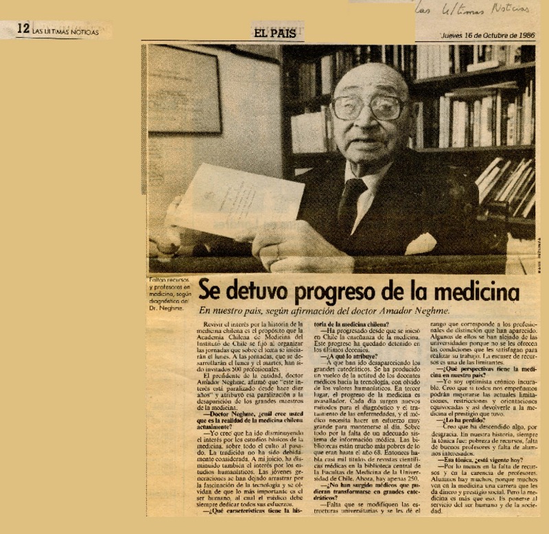 Falleció el doctor Amador Neghme, presidente de la Academia Chilena de Medicina [artículo].