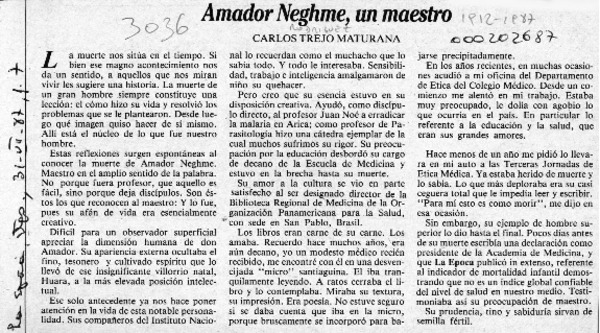 Amador Neghme, un maestro [artículo] Carlos Trejo Maturana.