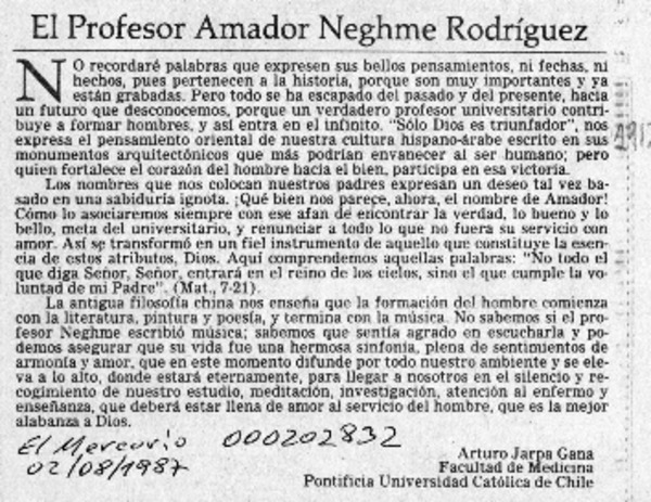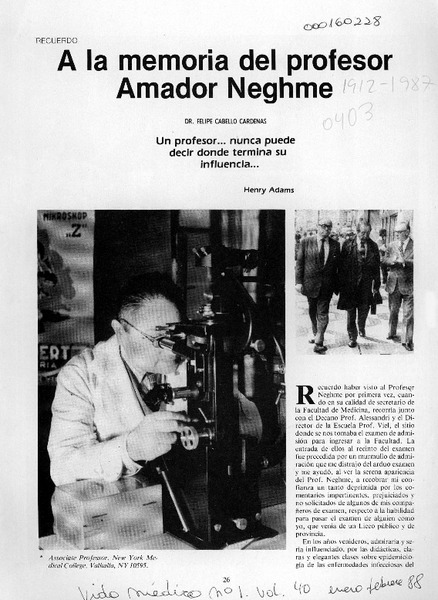 A la memoria del profesor Amador Neghme [artículo] Felipe Cabello Cárdenas.