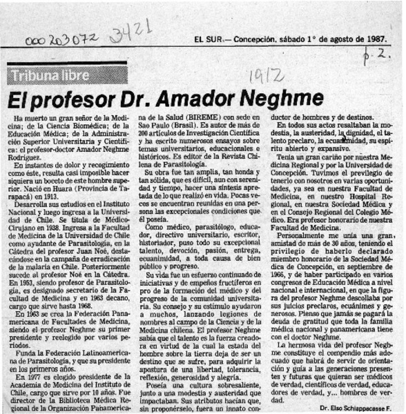 El profesor Dr. Amador Neghme [artículo] Elso Schiappacasse F.