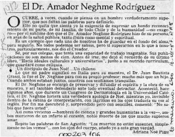 El Dr. Amador Neghme Rodríguez [artículo] Adriana Noé Pizzo.