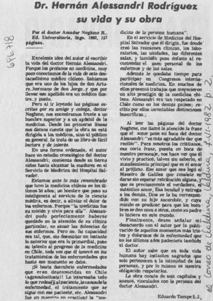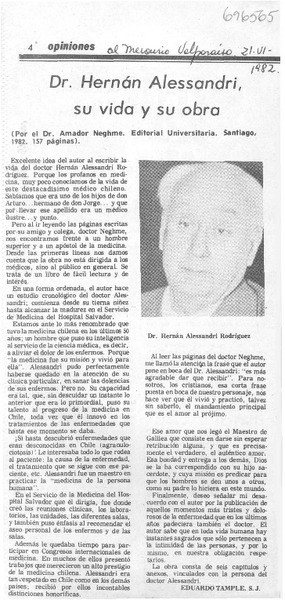 Dr. Hernán Alessandri, su vida y su obra [artículo] Eduardo Tample, S.J.