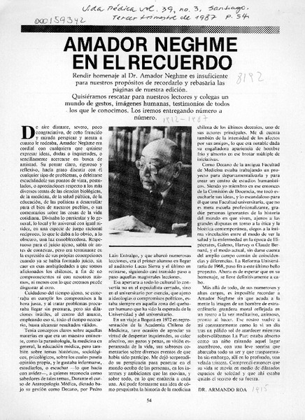 Amador Neghme en el recuerdo [artículo] Jaime Pérez-Olea [y] Armando Roa.