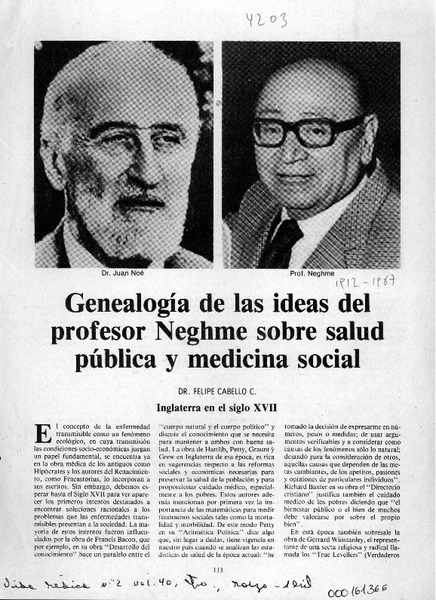 Genealogía de las ideas del profesor Neghme sobre salud pública y medicina social [artículo] Felipe Cabello C.