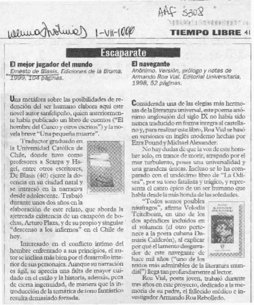 ROA VIAL, ARMANDO - BLASIS, ERNESTO DE - MEJOR JUGADOR DEL MUNDO
