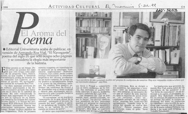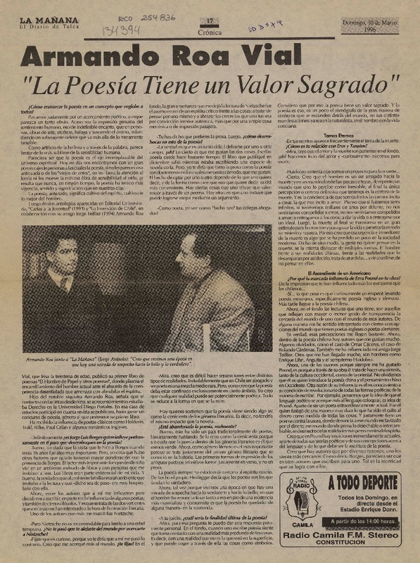 Armando Roa Vial, "La poesía tiene un valor sagrado" [artículo] Jorge Abasolo Aravena.