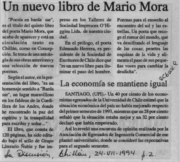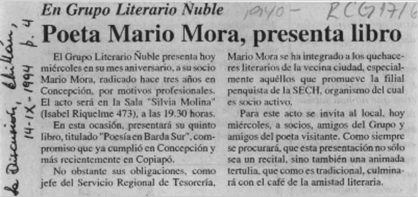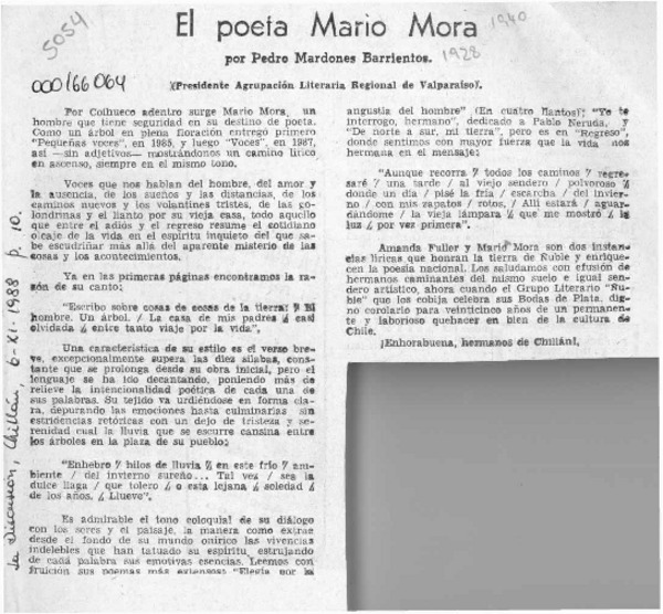 El poeta Mario Mora [artículo] Pedro Mardones Barrientos.