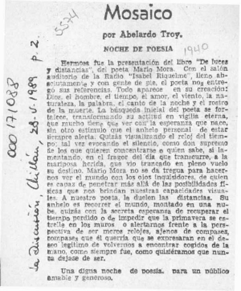 "Voces", poemas de Mario Mora Arteaga [artículo] Miguel Angel Díaz.