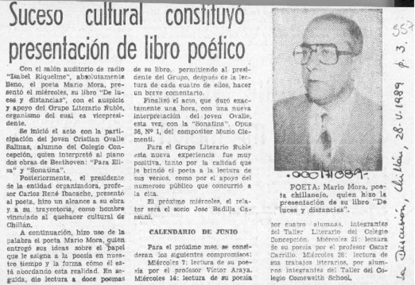 Lectura poética en homenaje a escritor Mario Mora Arteaga [artículo].