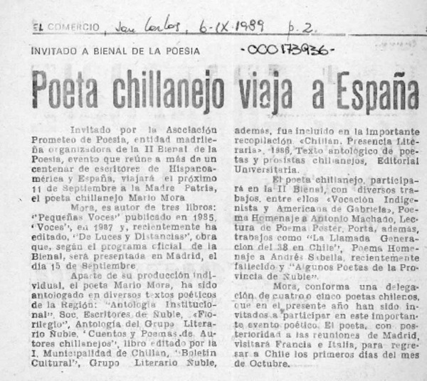 El Poeta Mario Mora invitado a Bienal Poética en Madrid [artículo].