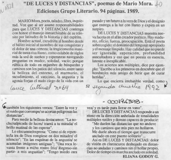 "De luces y distancias" [artículo] Eliana Godoy G.