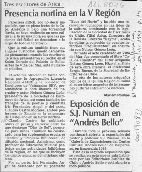 Presencia nortina en la V Región [artículo] Myriam Phillips.