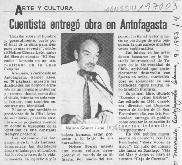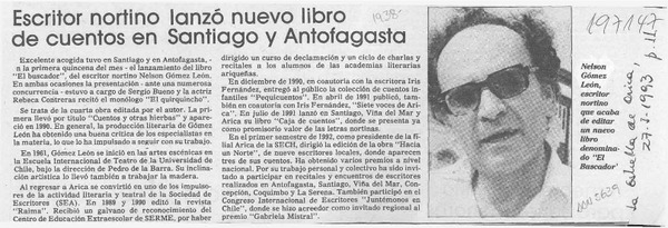 Escritor nortino lanzó nuevo libro de cuentos en Santiago y Antofagasta [artículo].