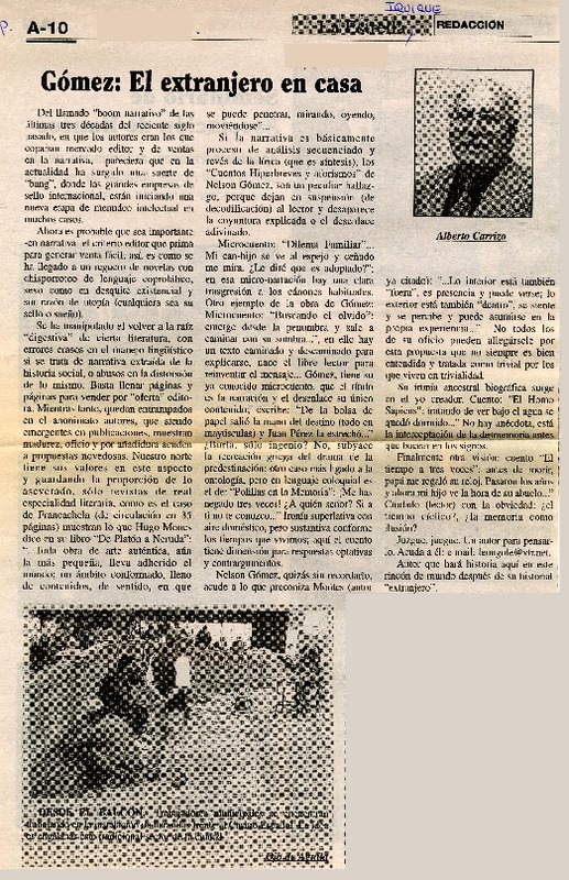 Gómez: el extranjero en casa [artículo] Alberto Carrizo.