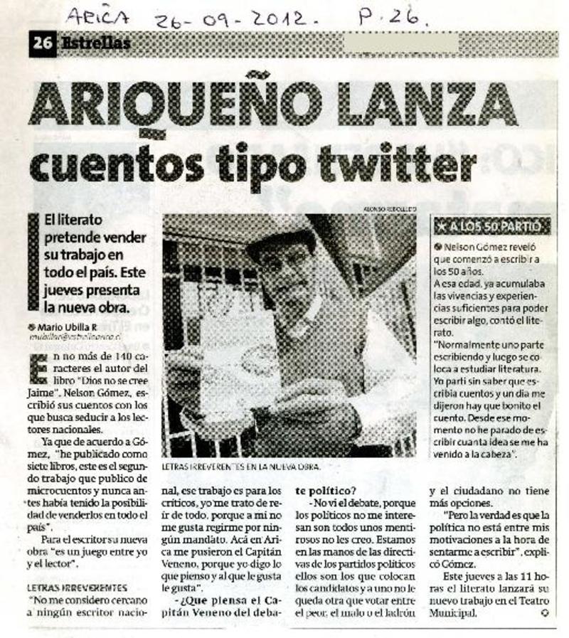 Ariqueño lanza cuentos tipo twitter. [artículo]