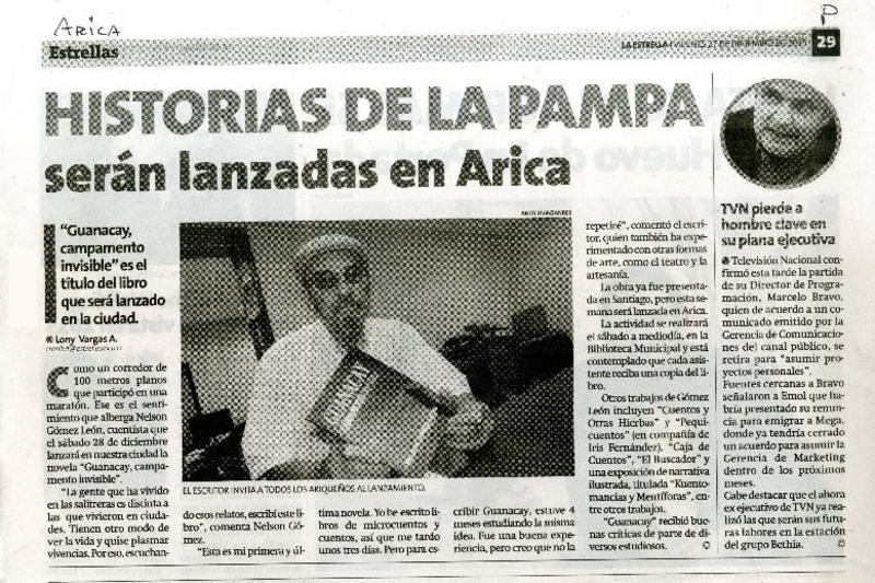 Historias de la Pampa serán lanzadas en Arica [artículo] Lony Vargas A.