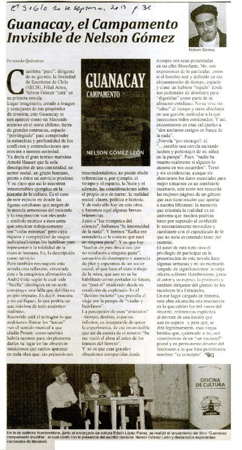 Guanacay, el campamento invisible de Nelson Gómez [artículo] Fernando Quilodrán.