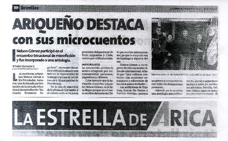 Ariqueño destaca con sus microcuentos [artículo] Pedro Clemente G.