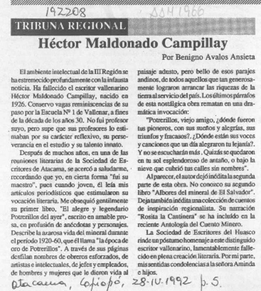 Héctor Maldonado Campillay [artículo] Benigno Avalos Ansieta.