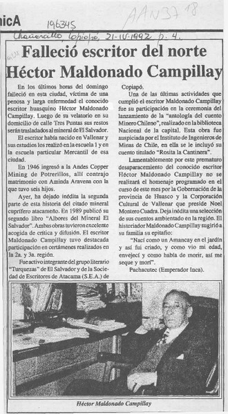 Falleció escritor del norte Héctor Maldonado Campillay [artículo].