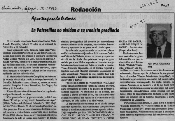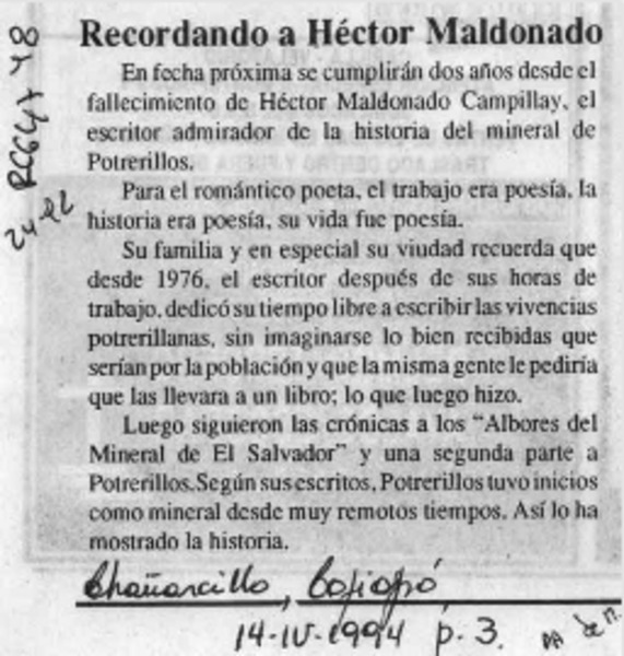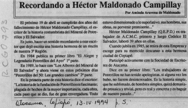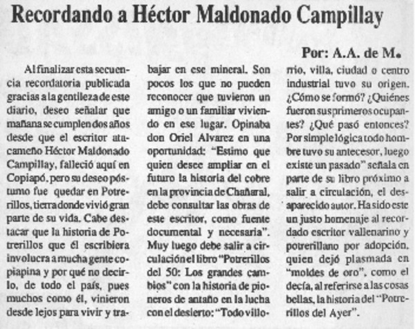 Recordando a Héctor Maldonado Campillay [artículo] A.A. de M.