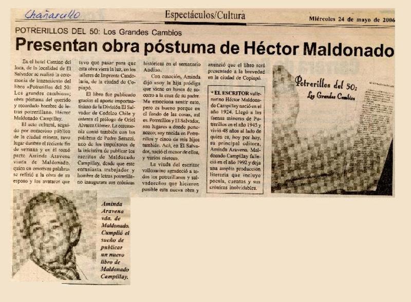 Potrerillos del 50: Los grandes cambios. Presentan obra póstuma de Héctor Maldonado [artículo].