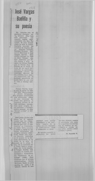 José Vargas Badilla y su poesía [artículo] O. Acevedo V.