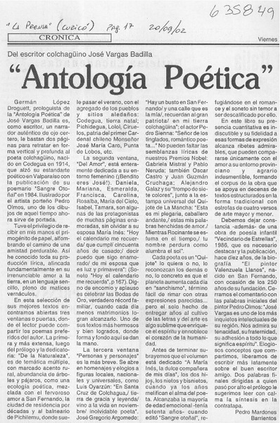 José Vargas Badilla, "Antología poética" [artículo] José Arraño Acevedo.