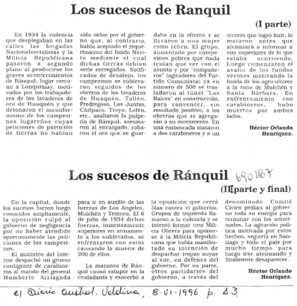 Los sucesos de Ránquil [artículo] Héctor Orlando Henríquez.