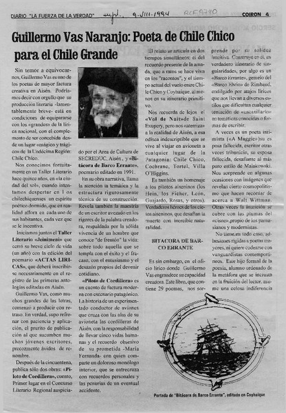 Guillermo Vas Naranjo, un poeta de Chile Chico [artículo].