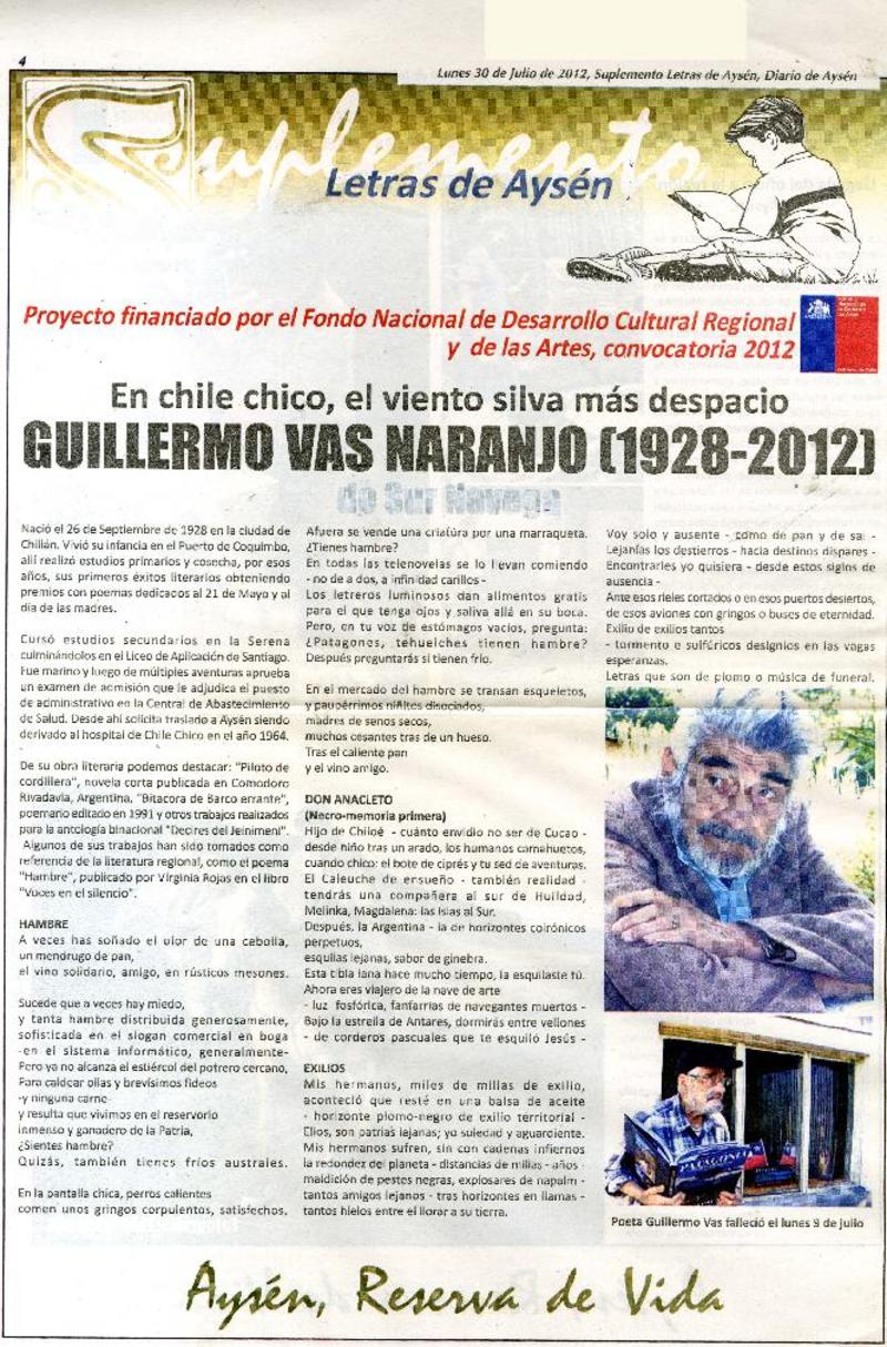 Guillermo Vas Naranjo, poeta de Chile Chico para el Chile grande [artículo].