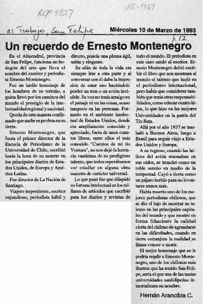 Un recuerdo de Ernesto Montenegro [artículo] Hernán Arancibia C.