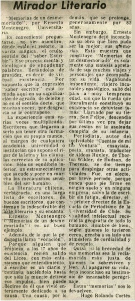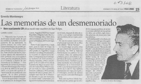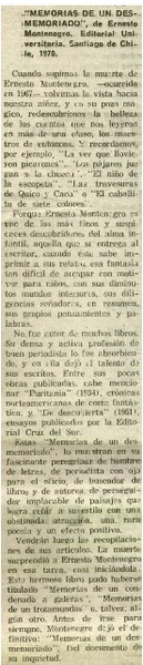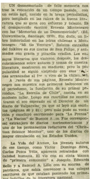 Ernesto Montenegro y sus "memorias" [artículo] Andrés Sabella.
