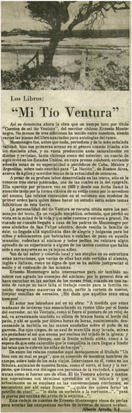 Ernesto Montenegro: mi tío Ventura [artículo] Ignacio Valente.