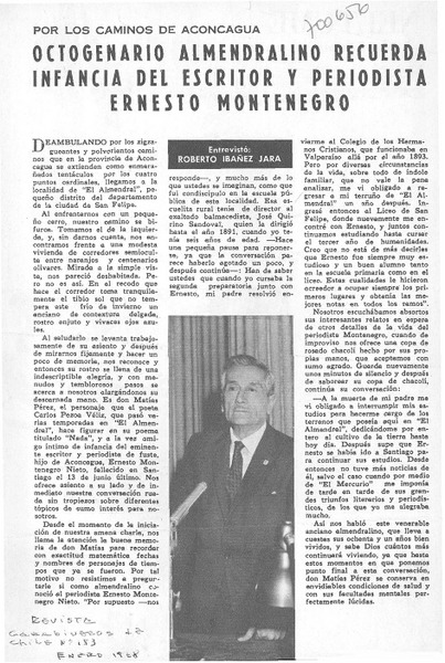 Octogenario almendralino recuerda infancia del escritor y periodista Ernesto Montenegro [artículo] Roberto Ibáñez Jara.