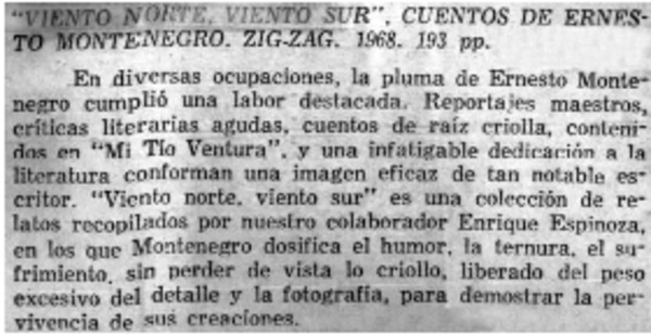 Los Cuentos de Ernesto Montenegro [artículo] Luis Merino Reyes.