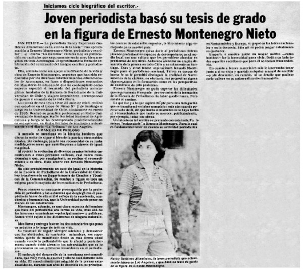 Joven periodista basó su tesis de grado en la figura de Ernesto Montenegro Nieto. [artículo]