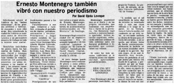 Ernesto Montenegro también vibró con nuestro periodismo [artículo] David Ojeda Leveque.
