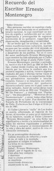 Recuerdo del escritor Ernesto Montenegro [artículo] Ana Bustamante Lagos.