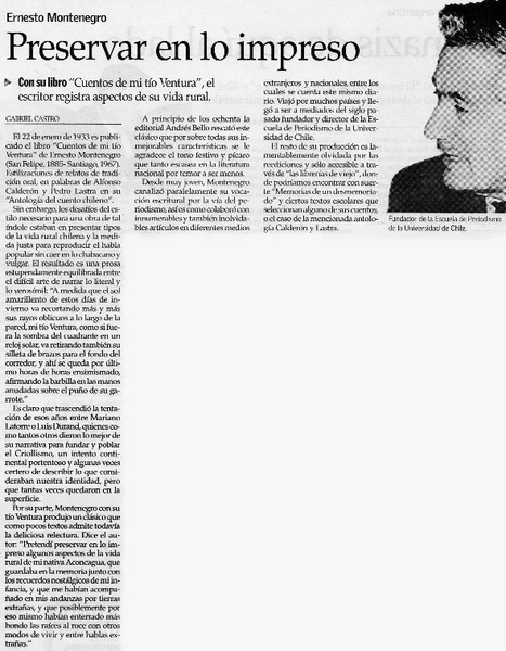 Ernesto Montenegro: "mi tío Ventura" [artículo] Claudio Solar.