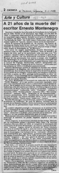 A 21 años de la muerte del escritor Ernesto Montenegro [artículo] J. M. S.