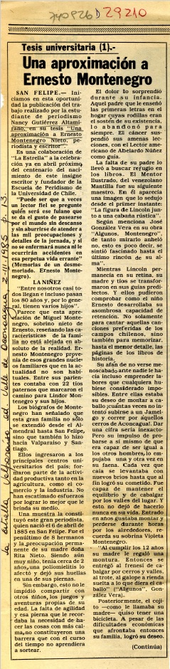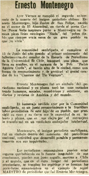 Ernesto Montenegro N. "sanfelipeño universal". [artículo]
