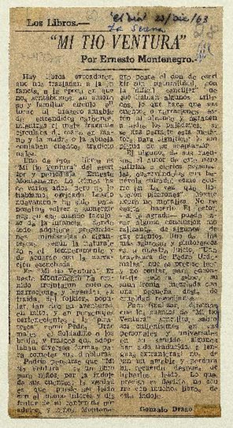 "Mi tio Ventura" [artículo] Gonzalo Drago.