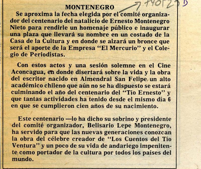 Un escritor de Aconcagua, Ernesto Montenegro. [artículo]