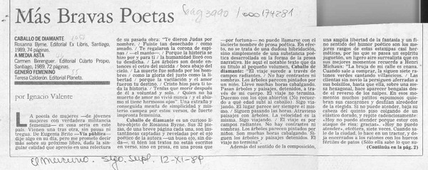 Más bravas poetas [artículo] Ignacio Valente.