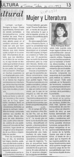 Mujer y literatura [artículo] Silvia Rodríguez Bravo.