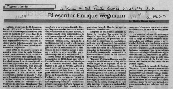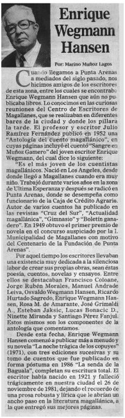 El escritor Enrique Wegmann [artículo] Marino Muñoz Lagos.