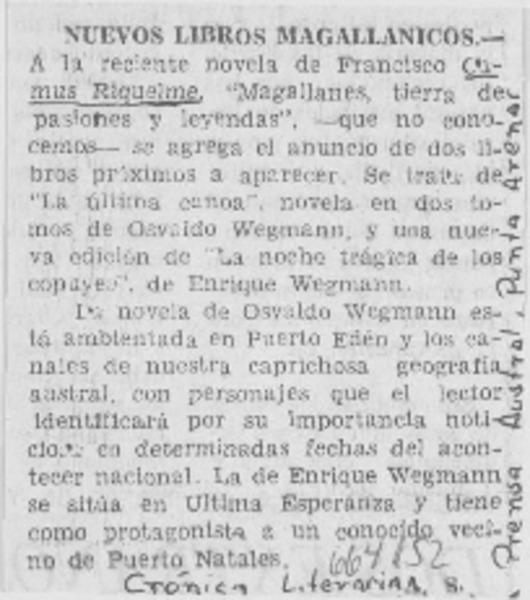 Nuevos libros magallánicos [artículo] Almagro Santander.